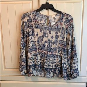 Cute, paisley printed top. Has wide sleeves. Material is 100 % rayon