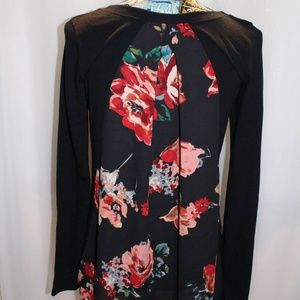 Le Lis Know Top w/ beautiful floral print on the back. This top is longer in the back and will look great with jeans and leggings!