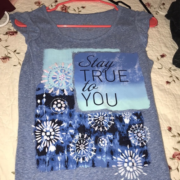 Short sleeved shirt. Has a little bit of glitter. “Stay true to you”