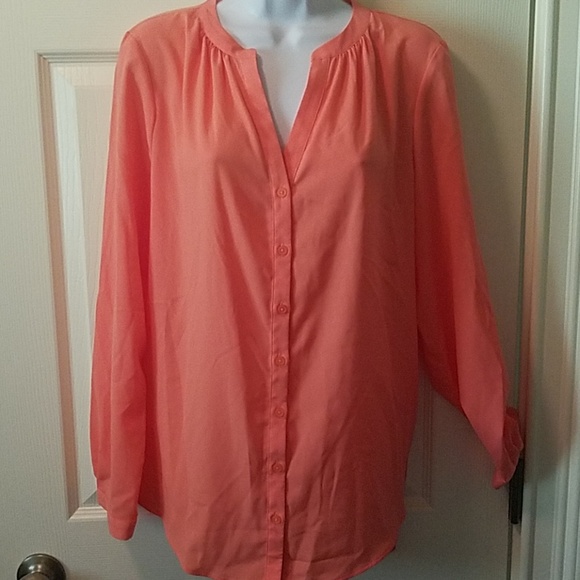 Peach color long-sleeve button-up blouse v neck Jacqueline Smith brand size small