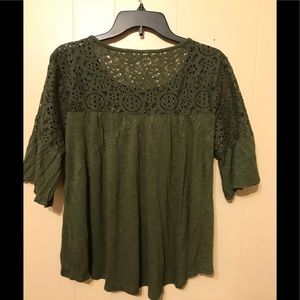 ANA. Size L. Olive Green, Lacy top Shirt.