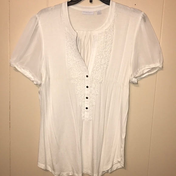 New York & Company. Size XL. Cream, Ruffle Front Shirt.