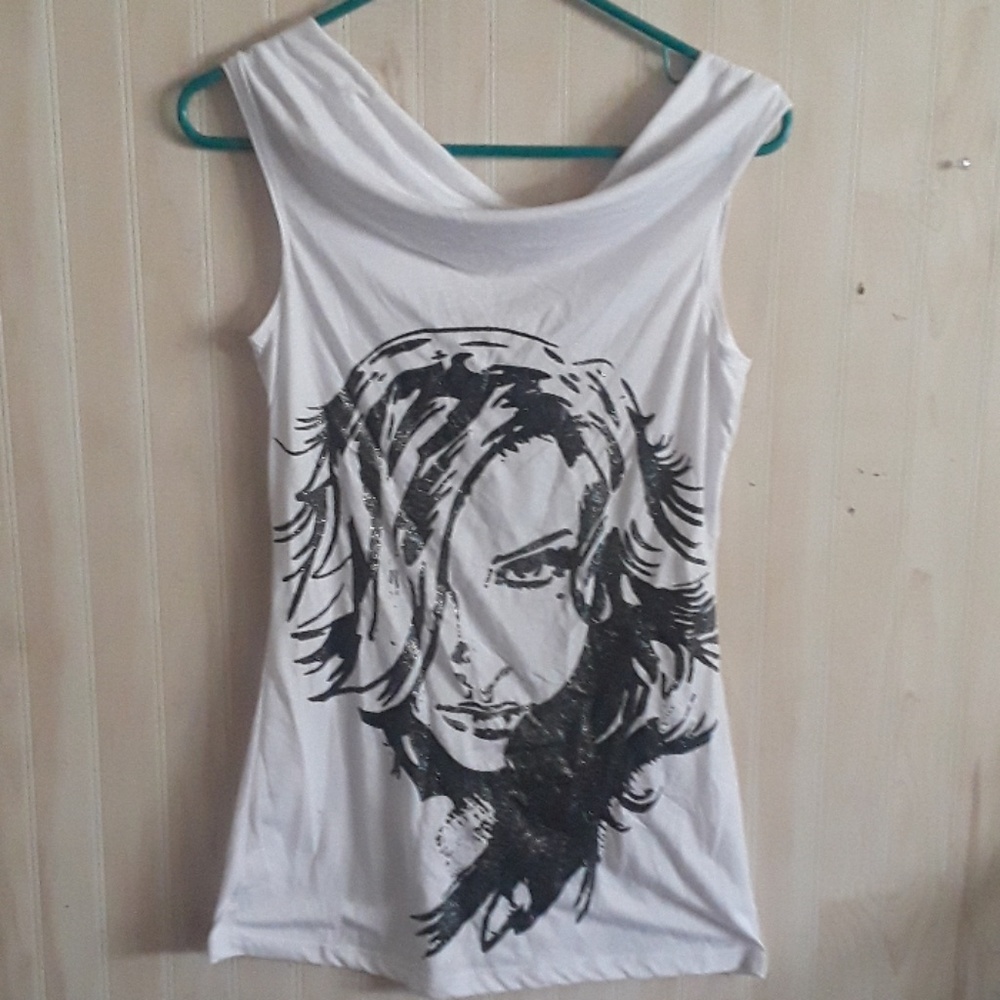 White hoop neck tank