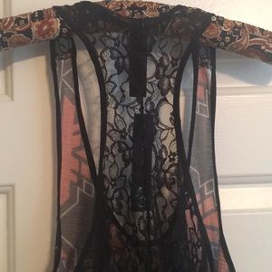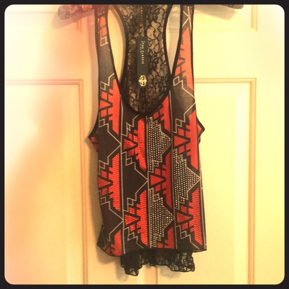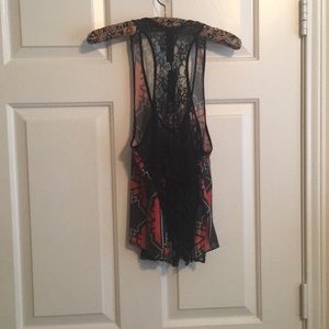Tank top red and black. Sheer back lace.