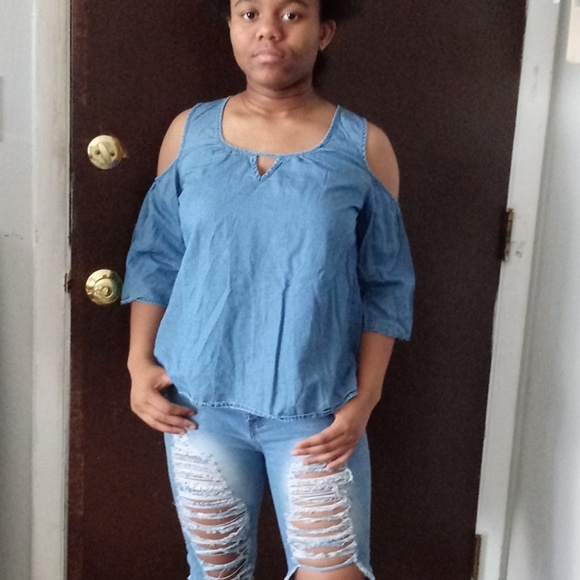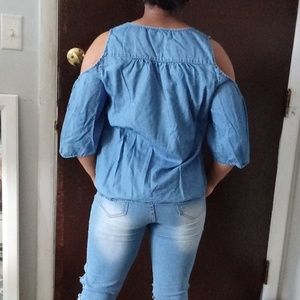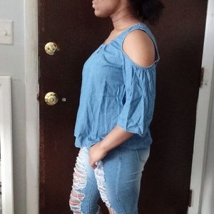 Three quarter sleeves denim top.