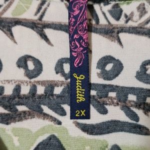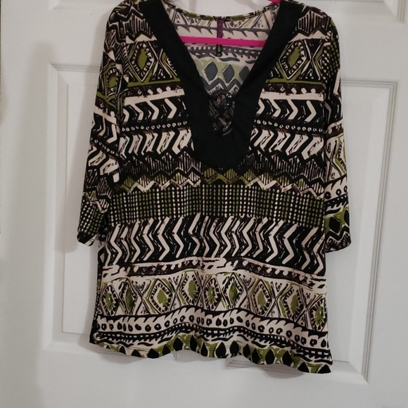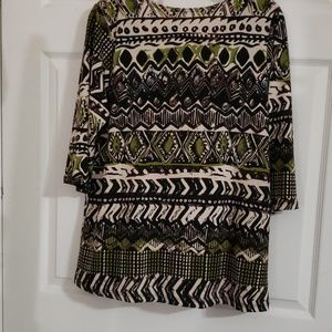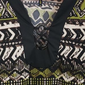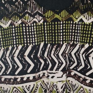 Black/Olive Green designs. Material is polyester and has stretch. Armpit to Armpit is 23 inches wide (T029)