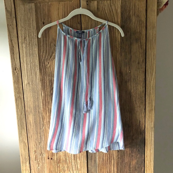 Chaps brand. Gauze, summer-weight swing top. Great for layering. Breathable and feather-lite in high heat.
