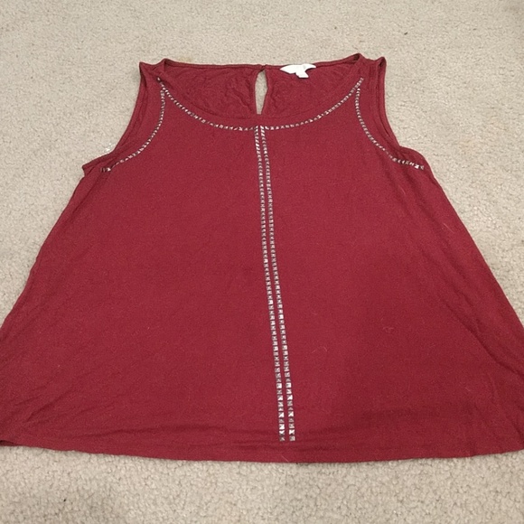 Burgundy tank with studs surrounding neckline