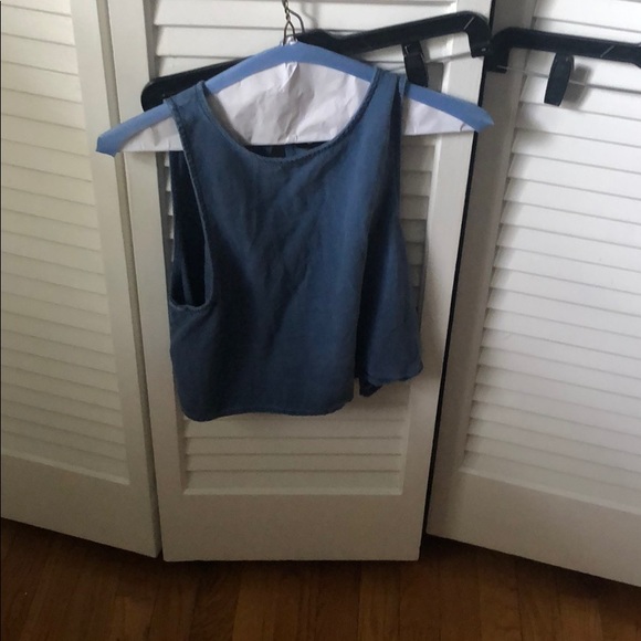 Jean crop backless!! Super cute goes well with leggings jeans and anything u like!! Jean material and color!!