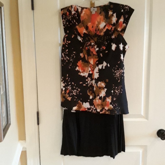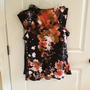 Feminine pullover top with ruffled front and cap sleeves.