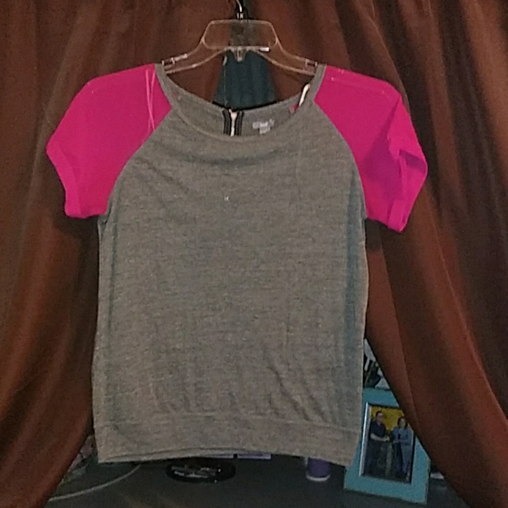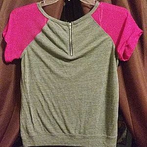 Cute gray with fuchsia sheer short sleeves. Zipper in back