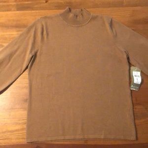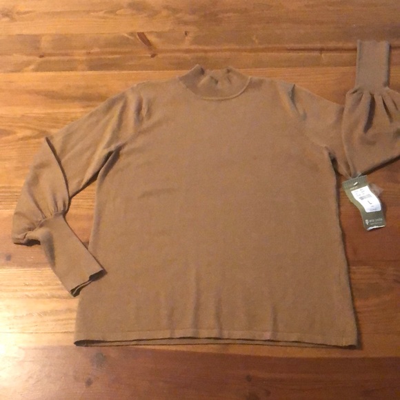 Erin London Camel color top size L made of Rayon and polyester, very soft.. New with tags. Would look great with cream color pants or skirt.