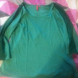 Net sleeves T-shirt. Pleasant green color. Cotton