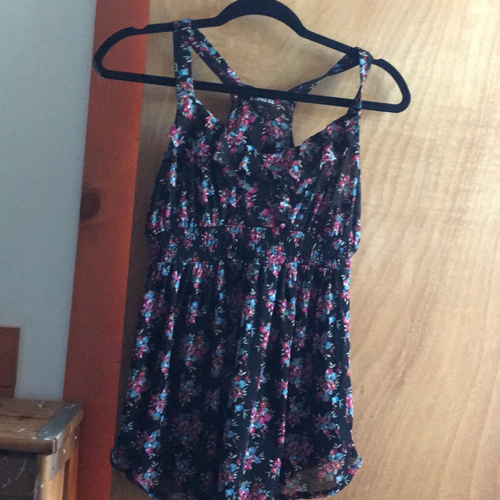 Very cute black sheer tank with an empire waist and a floral print blouse