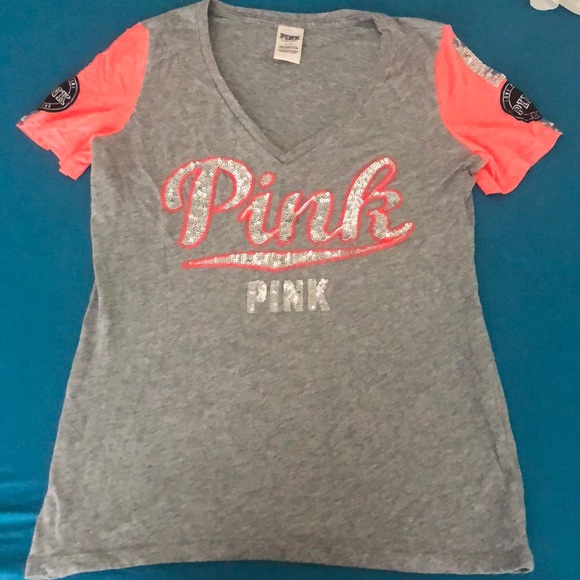V neck , short sleeves , sequin Writing