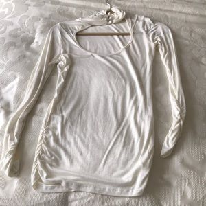 Adorable unworn turtle neck top with ruched sides and sleeves and cut out back!