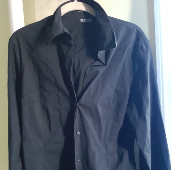 Black long sleeve button down shirt.