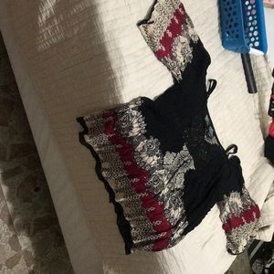 Beautifully designed top. Red and black combination with the contemporary design in the middle. Feminine and classy.