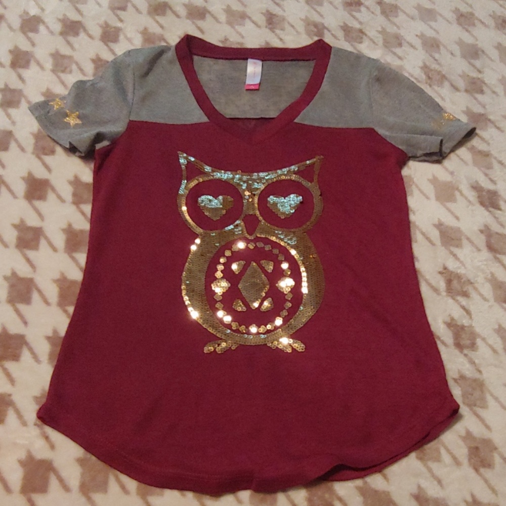 Marroon and grey owl top