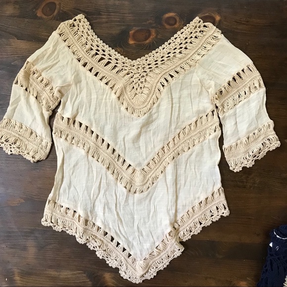 Super cute cream boho 3/4 sleeve top. Worn once, great condition, I’m just making room in my closet!