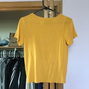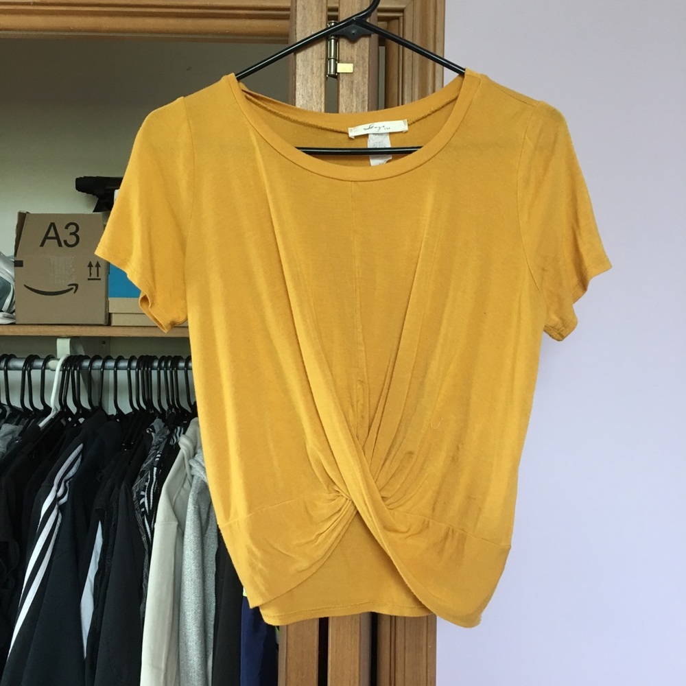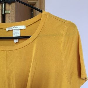 Mustard yellow top from tjmaxx. Worn a couple times. Size small, stretchy and comfortable. A little bit cropped since the front middle curves upward.
