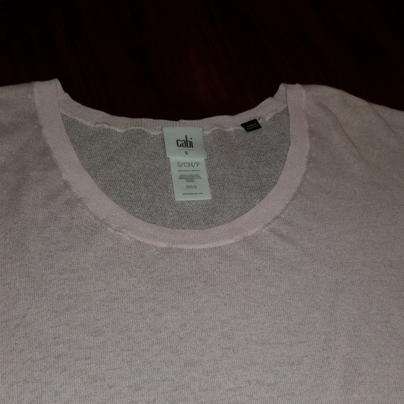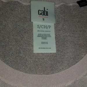 Very Very delicate by cabi on front my fingernail nick it as shown in picture,and on the back it's 69%cotton and 31% nylon light pink not bright.