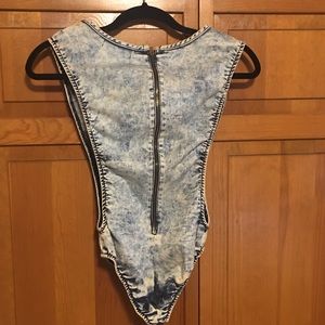 Very Cute Jean wash button leotard with zipper in back, sides are out as well💋