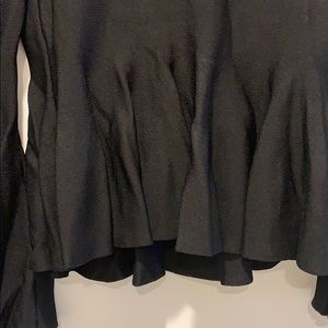Black stretchy bell sleeved top. Peplum bottom at waist. Dressy for a night out.