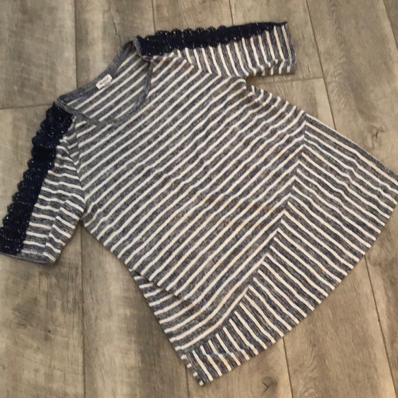 Blue and white Lace on shoulder/arm