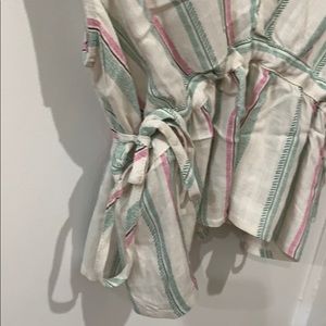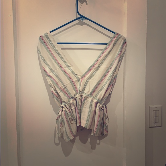 Cute top with jeans. Not super cropped. Definitely good for girls with bigger boobs. The ties on the side can be adjusted to sinch your waist. Never wore.