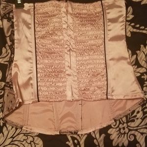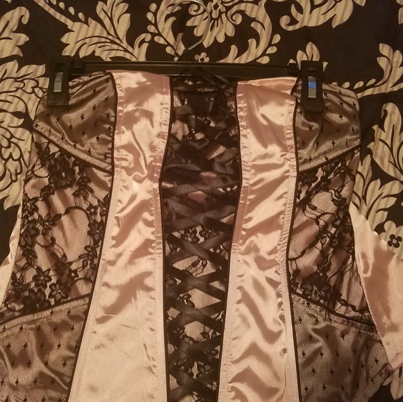 Light pink and black beautiful silky tube top. Great condition wore once. No rips, stains or tares. Very classy and elegant. Can be worn underneath a black jacket.