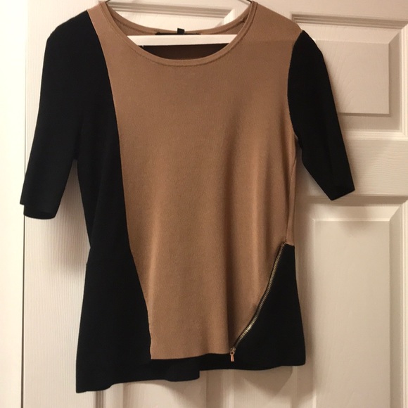 White House black market. Black and mustard color block top with the zipper on the side. Very good condition.