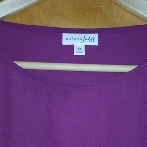 Plum colored top with flared sleeves and ruffles towards bottom! Excellent condition!