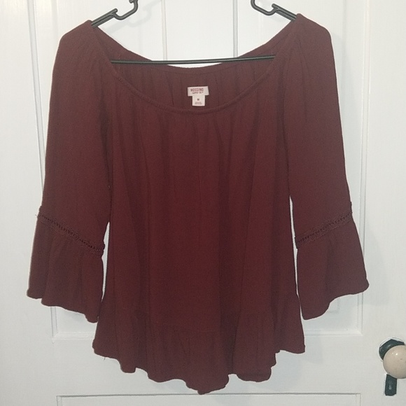 Ruffled peasant top burgundy