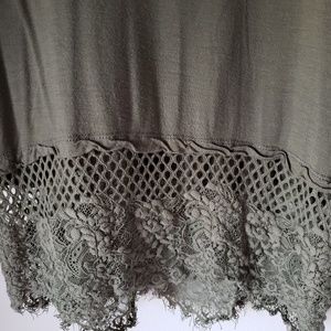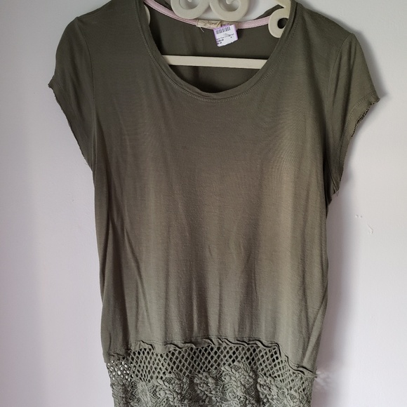 🛑Rewind. Soft & light tee offers elevated take on a classic. Edgy lace & crochet hem. Size M