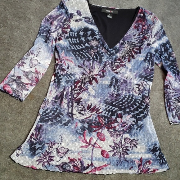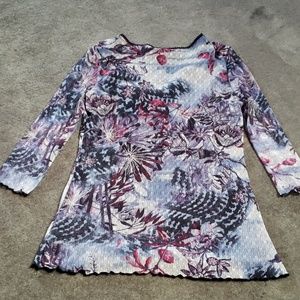Blue flowered v neck lined in black