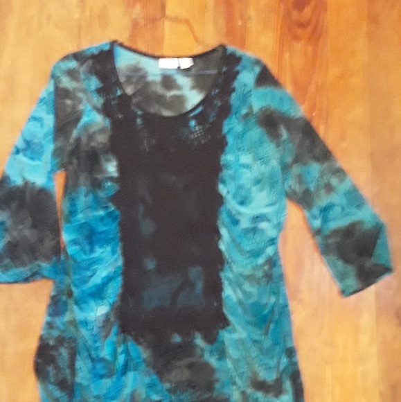 A pretty blue and black shirt with floral design long sleeve very comfortable and soft size 14 to 16