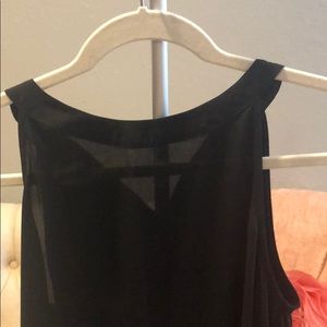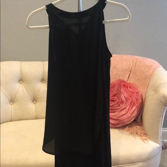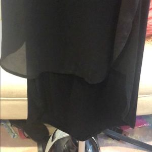 Black high low top, front hits hip level back hits mid thigh I’m 5’2