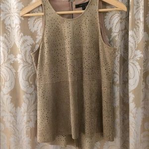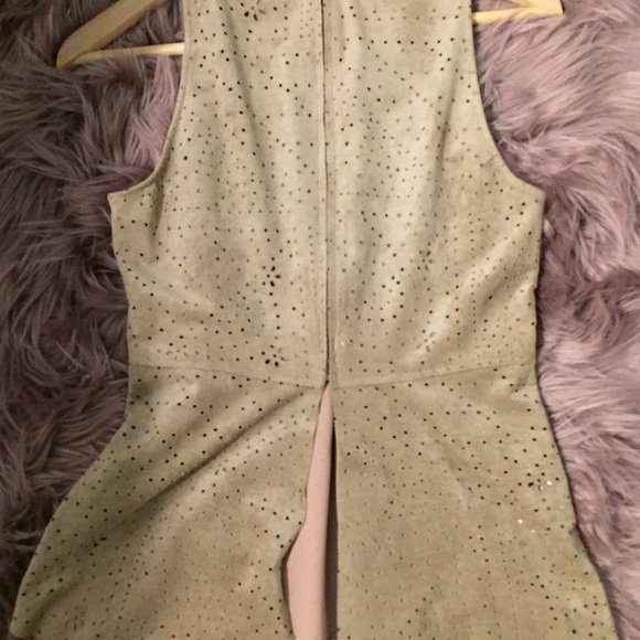 Summer top form fitting to waste split in the back from waist down , never worn ... material is suede