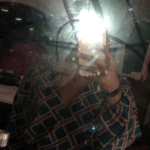 WORN ONCE; Got this shirt for my birthday outfit last October and haven’t touched it since. It’s a crop but, looks good and appropriate with high-waisted pants or skirts. The sleeves are very loose and comfy. I love the winter-green/brown/white print! I hate to get rid of this but, crop tops aren’t my thing.