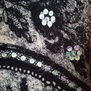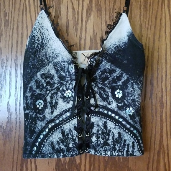 Adjustable straps/knit tank, laces up front, sequence flower shapes