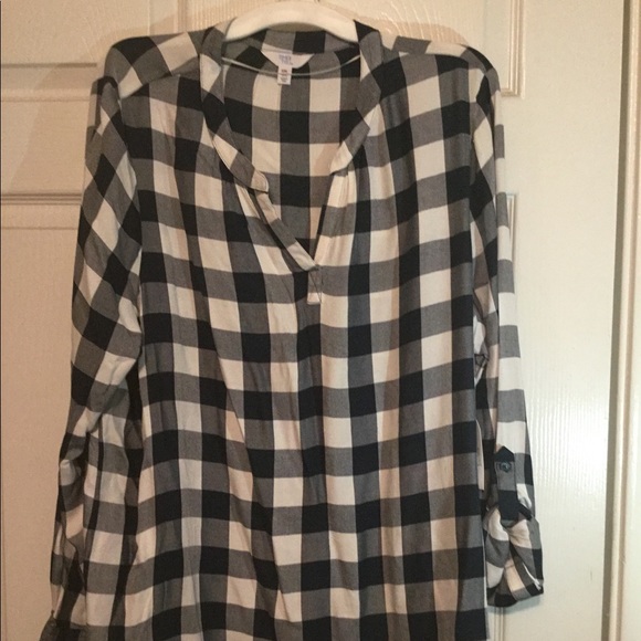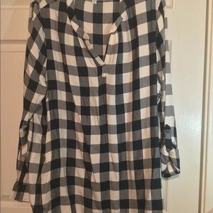 Checkered teal green and white top