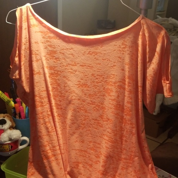 Orange cold shoulder tee shirt material
