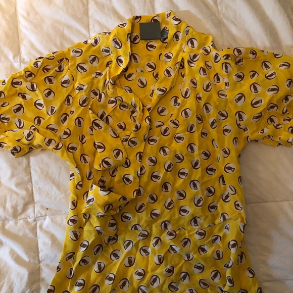 Anthro top! tie on the top by the neck and mustard color with owl print