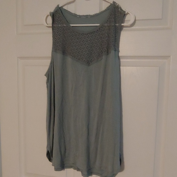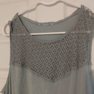 Bluish gray, sleeveless, lace top