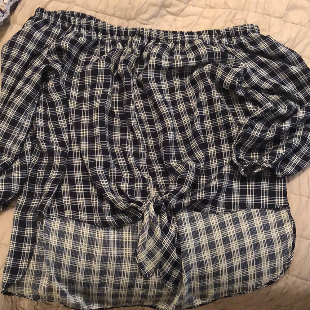 DD the shoulder blue and white top