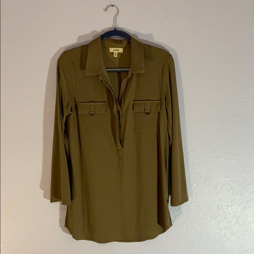 Olive Green Button-Up Blouse