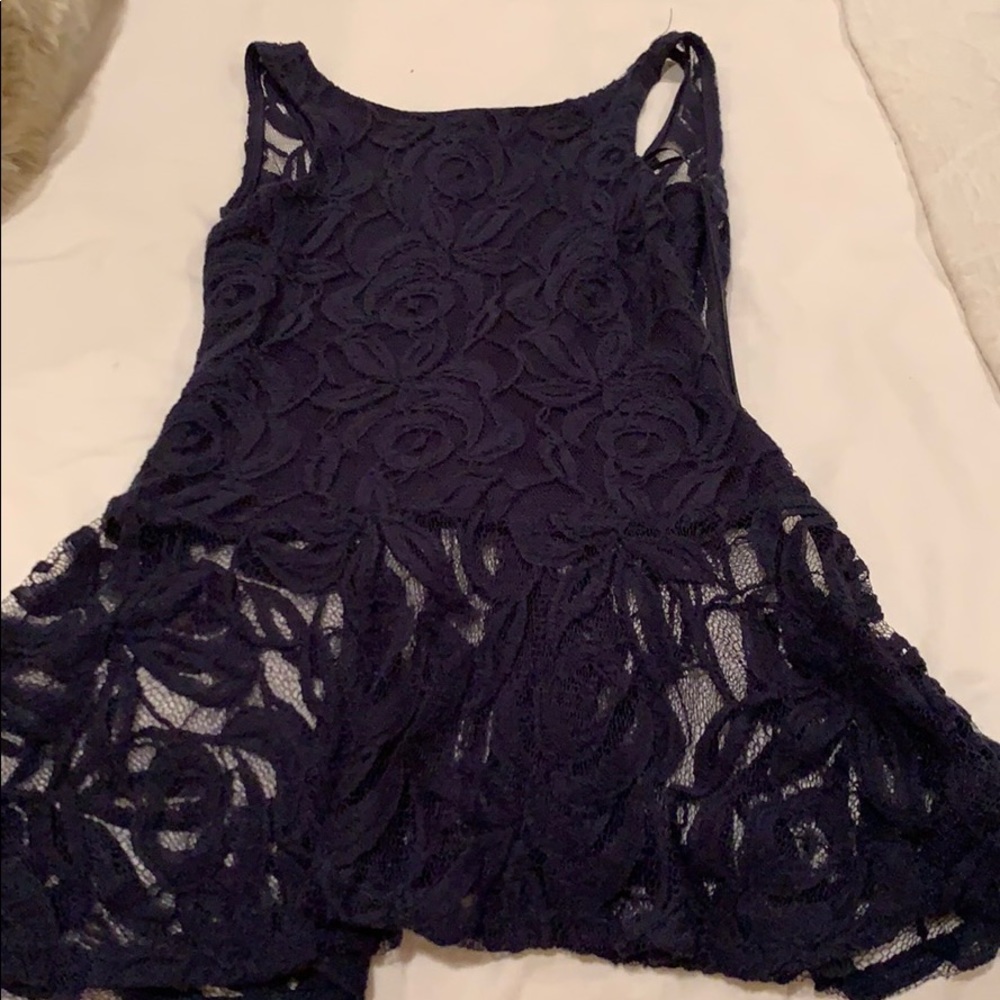 Beautiful lace with a drop back (completely lace through the back) top . Looks amazing with white jeans and heels for a summer night!