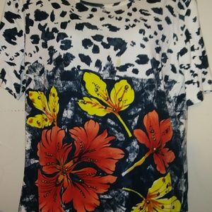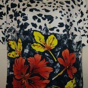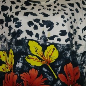 Very nice top.Can be dressy or casual .Colors just pop to bring whatever u pair it with.Machine washable.