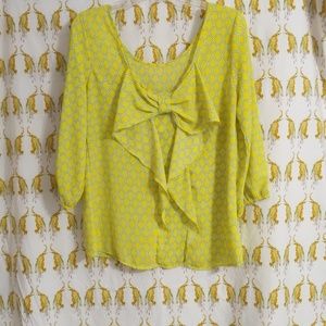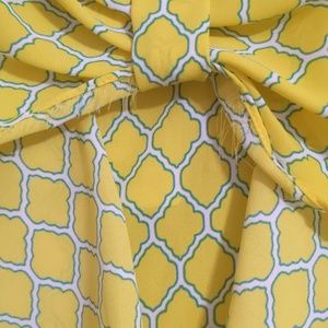 Mm❤️mm brand. Yellow with green and white outlined pattern. Made of 100% polyester and had a beautiful bow on the backside! Super cute for any adventure! No trades, offers are welcome anytime at reasonable bids! This is a Cat-Friendly home 🐈🐾 for those who may be allergic! Happy shopping! 💛